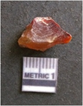 | Description / विवरण | It is chalcedony flake, translucent in appearance. The piece shows sharp pointed ends and flake scars on the surface as a result of flaking. The piece shows a bulb of percussion. |