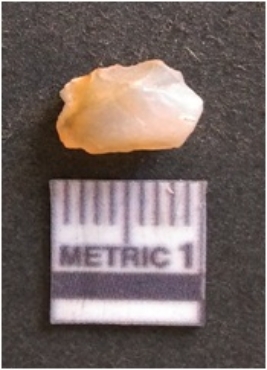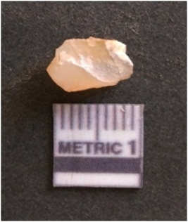 | Description / विवरण | It is chalcedony flake, translucent in appearance. The piece shows sharp pointed ends and flake scars on the surface as a result of flaking. The piece shows a bulb of percussion. |