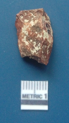 | Description / विवरण | The chert piece is dark in color, with a prominent bulb of percussion and sharp flaked edges. The piece is a part of lithic debitage or raw material for lithic knapping. The piece shows clear ripple marks and bulb of percussion. |