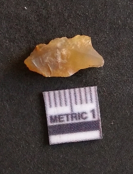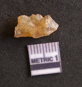 | Description / विवरण | The chalcedony flake is pale yellow in color. Translucent in appurtenance. The piece is shows sharp pointed ends and flake scars on the surface. As a result of flaking. |