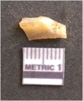 | Description / विवरण | It is chalcedony flake, translucent in appearance. The piece shows sharp pointed ends and flake scars on the surface as a result of flaking. The piece shows a bulb of percussion. |