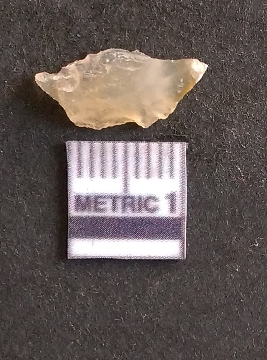 | Description / विवरण | The chalcedony flake is pale yellow in color. Translucent in appurtenance. The piece is shows sharp pointed ends and flake scars on the surface. As a result of flaking. |