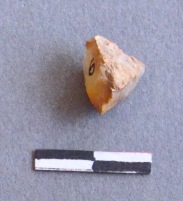 | Description / विवरण | It is a chalcedony fragment, with bulb of percussion on ventral side of the fragment. Flake ridges on the surface. |