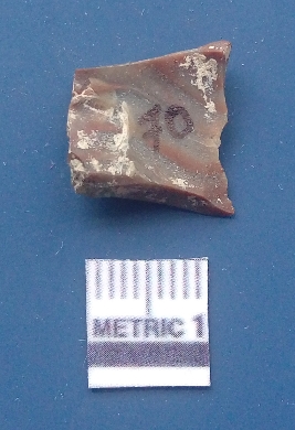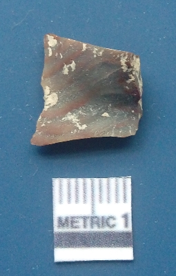| Description / विवरण | The chert piece is dark in color, with a prominent bulb of percussion and sharp flaked edges. The piece is a part of lithic debitage or raw material for lithic knapping. The piece shows clear ripple marks and bulb of percussion. |