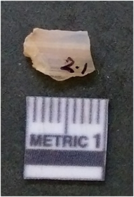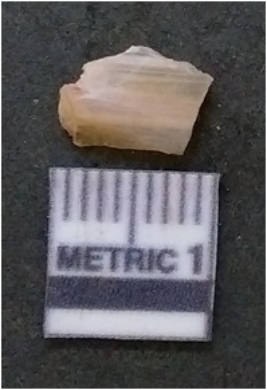 | Description / विवरण | The banded agate piece is crystalline in nature, with a smooth fracture pattern and visible bands on the flaked sides. The piece is pale in color and has sharp flaked ends. |