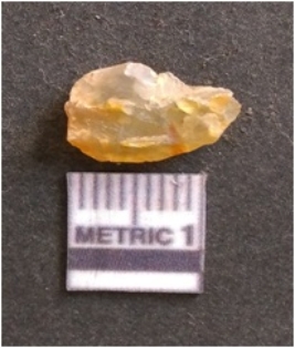 | Description / विवरण | It is chalcedony flake, translucent in appearance. The piece shows sharp pointed ends and flake scars on the surface as a result of flaking. The piece shows a bulb of percussion. |