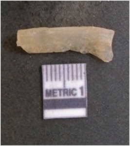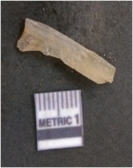 | Description / विवरण | It is chalcedony flake, translucent in appearance. The piece shows sharp pointed ends and flake scars on the surface as a result of flaking. The piece shows a bulb of percussion. |