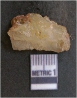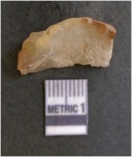 | Description / विवरण | It is chalcedony flake, translucent in appearance. The piece shows sharp pointed ends and flake scars on the surface as a result of flaking. The piece shows a bulb of percussion. |