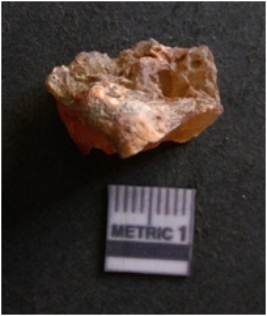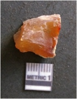 | Description / विवरण | It is chalcedony flake, translucent in appearance. The piece shows sharp pointed ends and flake scars on the surface as a result of flaking. The piece shows a bulb of percussion. |