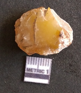 | Description / विवरण | The chalcedony flake is pale yellow in color. Translucent in appurtenance. The piece is shows sharp pointed ends and flake scars on the surface. As a result of flaking. |