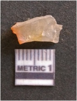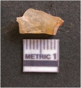 | Description / विवरण | It is chalcedony flake, translucent in appearance. The piece shows sharp pointed ends and flake scars on the surface as a result of flaking. The piece shows a bulb of percussion. |