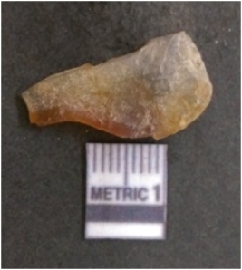 | Description / विवरण | It is chalcedony flake, translucent in appearance. The piece shows sharp pointed ends and flake scars on the surface as a result of flaking. The piece shows a bulb of percussion. |