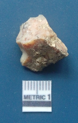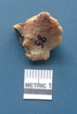 | Description / विवरण | The chert piece is dark in color, with a prominent bulb of percussion and sharp flaked edges. The piece is a part of lithic debitage or raw material for lithic knapping. The piece shows clear ripple marks and bulb of percussion. |