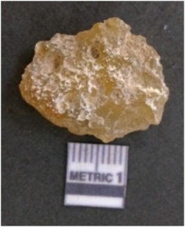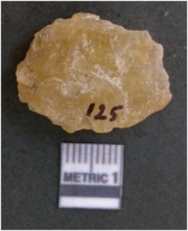 | Description / विवरण | It is chalcedony flake, translucent in appearance. The piece shows sharp pointed ends and flake scars on the surface as a result of flaking. The piece shows a bulb of percussion. |