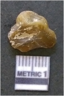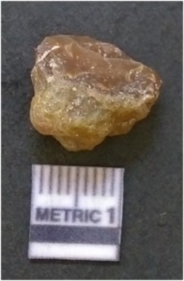 | Description / विवरण | The flake has irregular fracture pattern and sharp flaked edges as a result of lithic knapping activity. The piece is pale, with surfacial flake scars and a bulbous end. The flake is of smoky quartz variety, grayish in colour and translucent in appearance. |