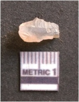 | Description / विवरण | It is chalcedony flake, translucent in appearance. The piece shows sharp pointed ends and flake scars on the surface as a result of flaking. The piece shows a bulb of percussion. |