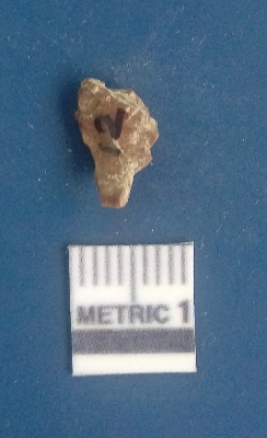 | Description / विवरण | The chert piece is dark in color, with a prominent bulb of percussion and sharp flaked edges. The piece is a part of lithic debitage or raw material for lithic knapping. The piece shows clear ripple marks and bulb of percussion. |