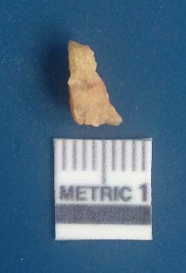 | Description / विवरण | The chert piece is dark in color, with a prominent bulb of percussion and sharp flaked edges. The piece is a part of lithic debitage or raw material for lithic knapping. The piece shows clear ripple marks and bulb of percussion. |