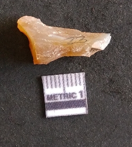 | Description / विवरण | The chalcedony flake is pale yellow in color. Translucent in appurtenance. The piece is shows sharp pointed ends and flake scars on the surface. As a result of flaking. |