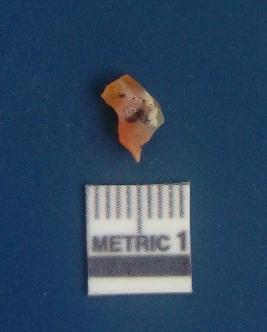 | Description / विवरण | It is carnelian flake red in color, with sharp flakes edges and a small bulb of percussion owing to knapping activity. The piece has sharp flaked edges and a crypto-crystalline matrix. |