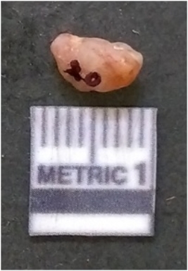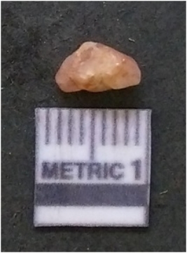 | Description / विवरण | The flake has irregular fracture pattern and sharp flaked edges as a result of lithic knapping activity. The piece is pale, with surfacial flake scars and a bulbous end. The quartz flake is rosy white in colour. |