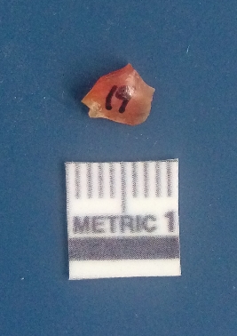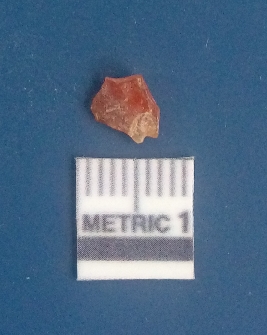 | Description / विवरण | It is carnelian flake red in color, with sharp flakes edges and a small bulb of percussion owing to knapping activity. The piece has sharp flaked edges and a crypto-crystalline matrix. |