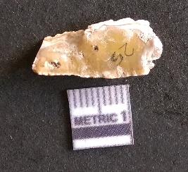 | Description / विवरण | The chalcedony flake is pale yellow in color. Translucent in appurtenance. The piece is shows sharp pointed ends and flake scars on the surface. As a result of flaking. |