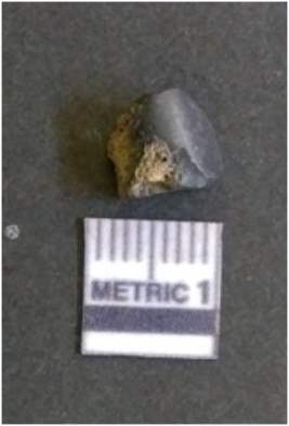 | Description / विवरण | The chert piece is dark in color, with a prominent bulb of percussion and sharp flaked edges. The piece is a part of lithic debitage or raw material for lithic knapping. The piece shows clear ripple marks and bulb of percussion. |