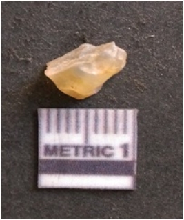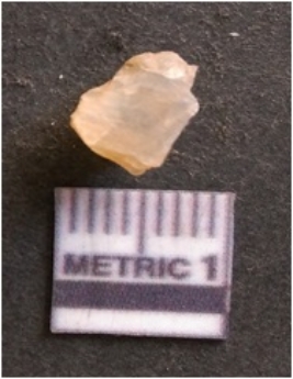 | Description / विवरण | It is chalcedony flake, translucent in appearance. The piece shows sharp pointed ends and flake scars on the surface as a result of flaking. The piece shows a bulb of percussion. |