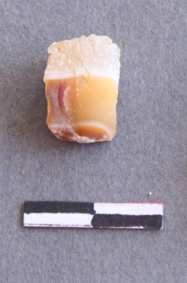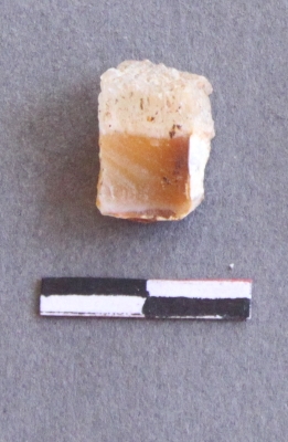 | Description / विवरण | It is a chalcedony fragment, with a bulb of percussion on the ventral side. Cortex on one end. It is cubiodal in shape. |