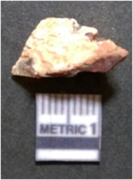 | Description / विवरण | It is carnelian flake red in color, with sharp flakes edges and a small bulb of percussion owing to knapping activity. The piece has sharp flaked edges and a crypto-crystalline matrix. |