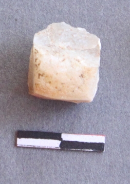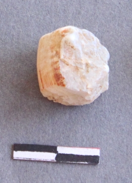 | Description / विवरण | It is a quartz fragment, with a striking platform, cortex on one end; there are many flake scars with ripples on it. |