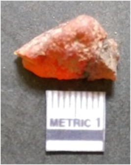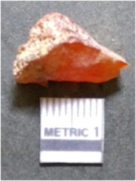 | Description / विवरण | It is carnelian flake red in color, with sharp flakes edges and a small bulb of percussion owing to knapping activity. The piece has sharp flaked edges and a crypto-crystalline matrix. |