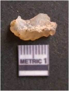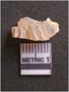 | Description / विवरण | It is chalcedony flake, translucent in appearance. The piece shows sharp pointed ends and flake scars on the surface as a result of flaking. The piece shows a bulb of percussion. |