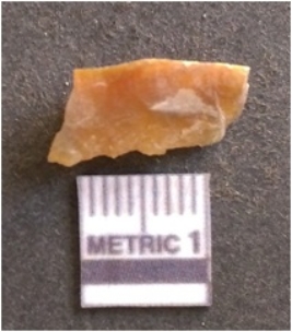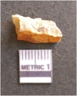 | Description / विवरण | It is chalcedony flake, translucent in appearance. The piece shows sharp pointed ends and flake scars on the surface as a result of flaking. The piece shows a bulb of percussion. |