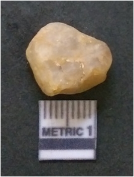 | Description / विवरण | The quartz flake has sharp flaked edges and pointed ends as a result of flaking. The piece is semi-transparent in nature with irregular fracture pattern. The piece is roughly triangular in shape and has a prominent bulb of percussion. |