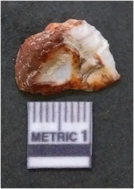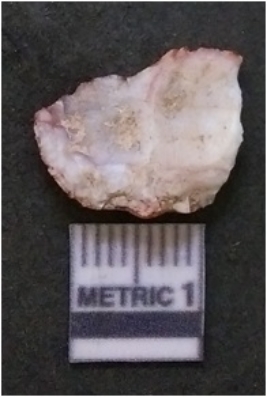 | Description / विवरण | The quartz flake has sharp flaked edges and pointed ends as a result of flaking. The piece is semi-transparent in nature with irregular fracture pattern. The piece is roughly triangular in shape and has a prominent bulb of percussion. |