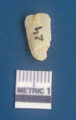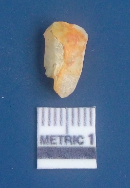| Description / विवरण | It is chalcedony flake, translucent in appearance. The piece shows sharp pointed ends and flake scars on the surface as a result of flaking. The piece shows a bulb of percussion. |