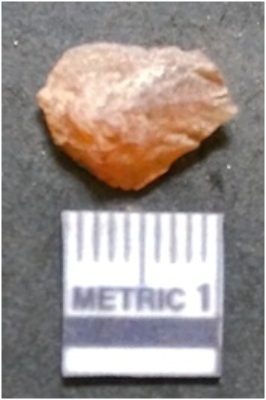 | Description / विवरण | The chert piece is dark in color, with a prominent bulb of percussion and sharp flaked edges. The piece is a part of lithic debitage or raw material for lithic knapping. The piece shows clear ripple marks and bulb of percussion. |