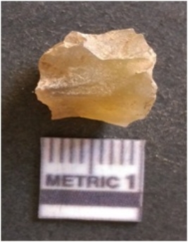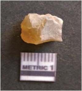 | Description / विवरण | It is chalcedony flake, translucent in appearance. The piece shows sharp pointed ends and flake scars on the surface as a result of flaking. The piece shows a bulb of percussion. |