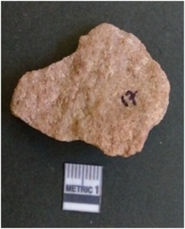 | Description / विवरण | This is a sand stone flake. Pinkish in color. flake marks seen on the surface. |
