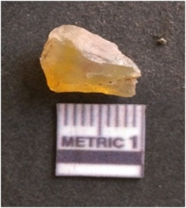 | Description / विवरण | It is chalcedony flake, translucent in appearance. The piece shows sharp pointed ends and flake scars on the surface as a result of flaking. The piece shows a bulb of percussion. |