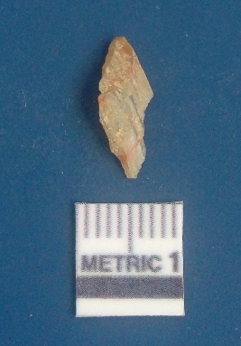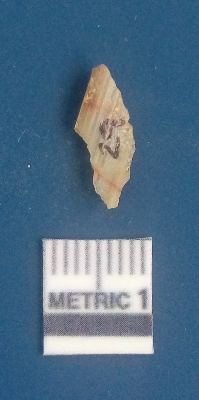 | Description / विवरण | It is chalcedony flake, translucent in appearance. The piece shows sharp pointed ends and flake scars on the surface as a result of flaking. The piece shows a bulb of percussion. |