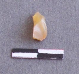 | Description / विवरण | It is a chalcedony fragment, with a bulb of percussion on the ventral side. Cortex on one end. |