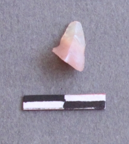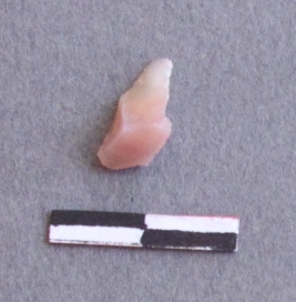 | Description / विवरण | It is a rosy quartz fragment, with bulb of percussion on ventral side of the fragment. Flake ridges on the surface. |