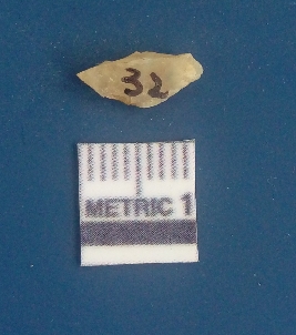 | Description / विवरण | It is chalcedony flake, translucent in appearance. The piece shows sharp pointed ends and flake scars on the surface as a result of flaking. The piece shows a bulb of percussion. |