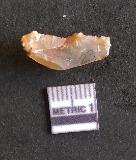 | Description / विवरण | The chalcedony flake is pale yellow in color. Translucent in appurtenance. The piece is shows sharp pointed ends and flake scars on the surface. As a result of flaking. |