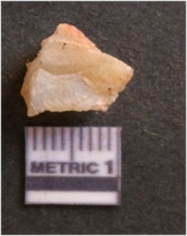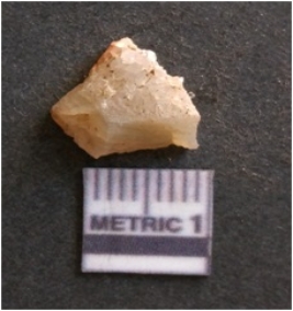 | Description / विवरण | It is chalcedony flake, translucent in appearance. The piece shows sharp pointed ends and flake scars on the surface as a result of flaking. The piece shows a bulb of percussion. |