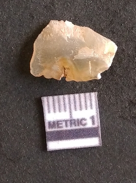 | Description / विवरण | The chalcedony flake is pale yellow in color. Translucent in appurtenance. The piece is shows sharp pointed ends and flake scars on the surface. As a result of flaking. |