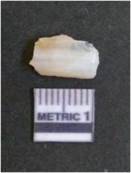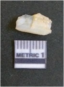 | Description / विवरण | The banded agate piece is crystalline in nature, with a smooth fracture pattern and visible bands on the flaked sides. The piece is pale in color and has sharp flaked ends. |